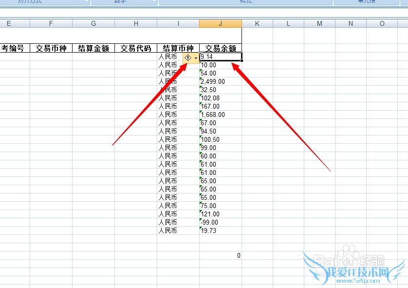 最近在算账的时候发现,excel里面的绿色小三角形符号让表格里的自动求和失效。先来看下图片: