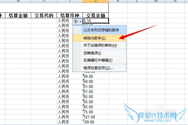 在弹出菜单里,选择转化为数字即可。