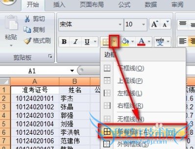 5.依次单击“开始”选项卡,然后单击框线下拉菜单中的“所有框线”,即可将所选内容的单元