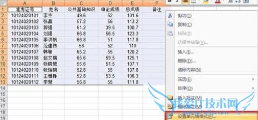 1选择要画表格线的表格内容,然后右击,选择“设置单元格格式”:
