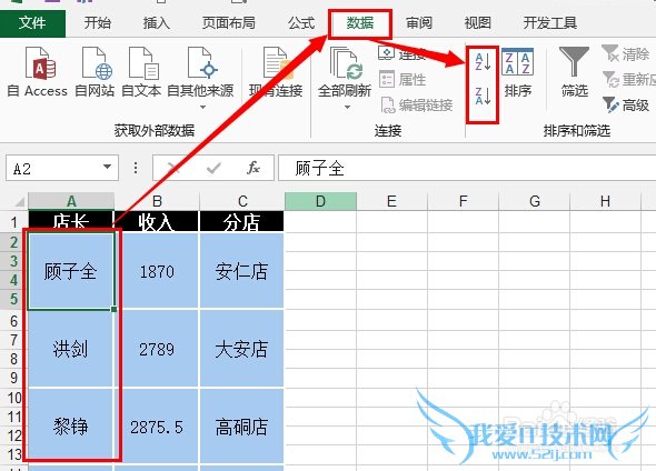 光标定位到需要进行排序的合并单元格列,然后点击 数据 ,升序或者降序 按钮进行排序 :