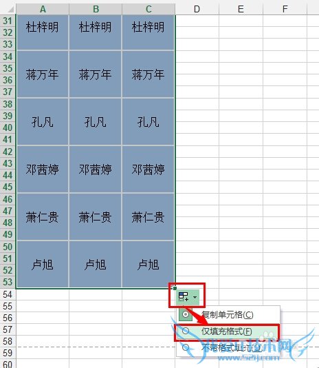 点击 填充选项按钮,然后选择 今天冲格式 :