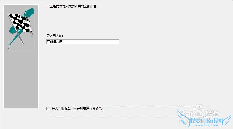 在这里,我们要输入【导入到表】,这里其实已经给你设定好了,然后选择在导入以后是否要进行分析,我这里没有勾选该选项