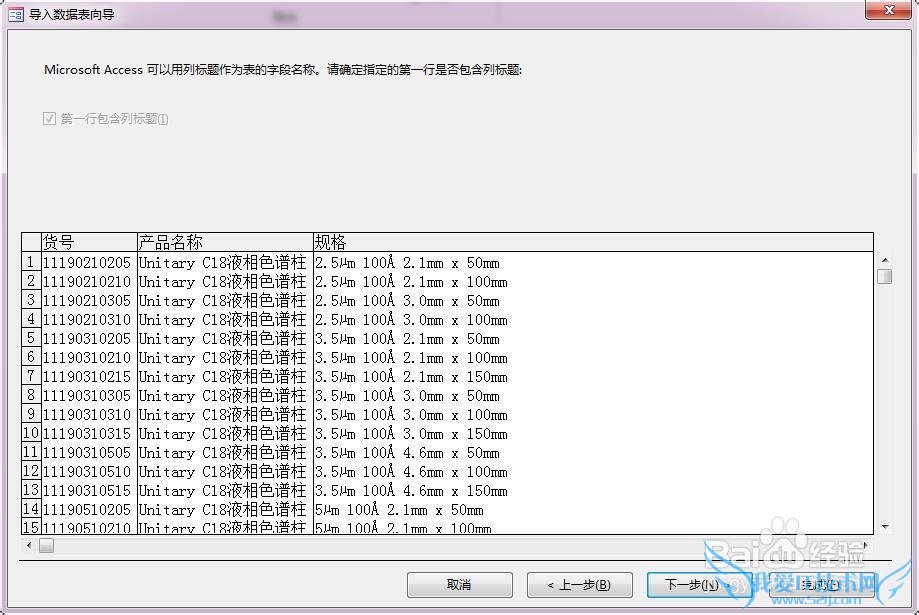这里,系统自动的给我们设定了【第一行包含标题】,如果系统没有自己设定好,我们自己选择一下,点击下一步