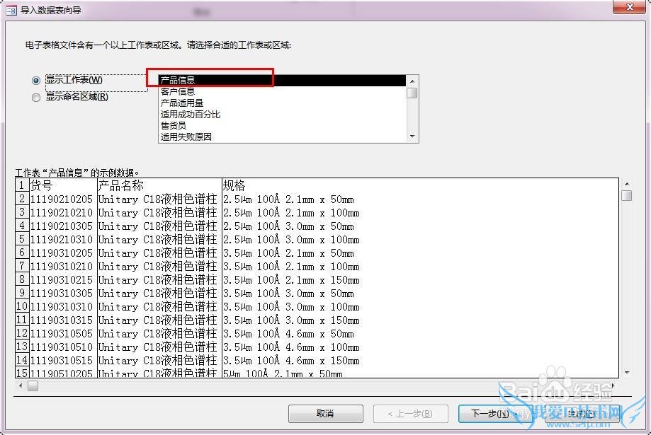 我们接下来要设定要导入的工作表,因为在一个Excel中可能存在很多的工作表,我们选择一个,然后点击下一步
