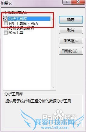 在这里我们需要勾选“分析工具库”,这样就可以使用分析工具了。如果我们想要在vba中使用分析工具,还需要勾选下面的选项【分析工具库-vba】,点击确定按钮