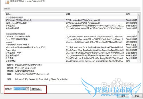 在管理栏中,选择“Excel加载项”,然后点击转到按钮,打开了加载宏的对话框