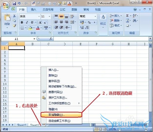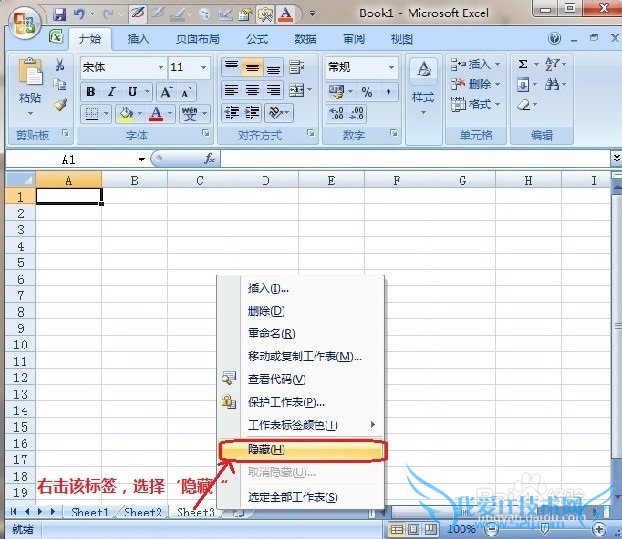 如图所示,如何隐藏工作簿中的部分标签,比如“sheet3",右击该工作表标签,然后选择”隐藏“选项,该工作表就自然隐藏了,如何取消隐藏呢?再右击工作表标签栏,选择"取消隐藏”就可以显示“sheet3"工作表标签。