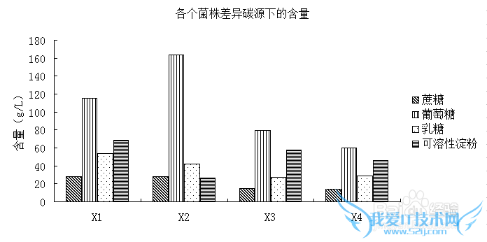 柱形图是每个学习excel的同志必须掌握的技巧,并且在日常工作中柱形图也是经常用到,因为它能较直观地显示数据的关系。现在以图文并茂的方式,具体展示柱形图的绘制方法,以及柱形图格式修改的方法。以下图中的数据为例,来说明方法,其中X1、X2、X3、X4分别表示不同菌株。