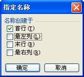 3、选中E1:F3单元格,选择“插入—名称—指定—首行”,如图所示: