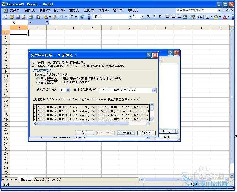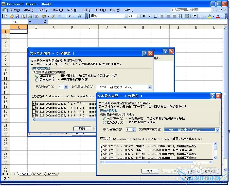 打开过程,就是定义把刚才的word文字表格文件按什么样的规则成为execl表格,表格的内容文件原始格式选用简体中文gb2313,分隔符号用我刚才定义的逗号,