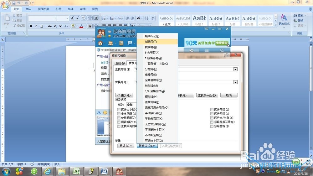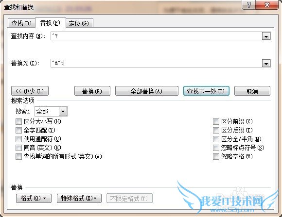 3、再把光标置入“替换”框内,在“特殊格式”中单击“查找内容”,再单击“制表符”,再全部替换;4、然后复制或剪切,在EXCEL中粘贴即可。