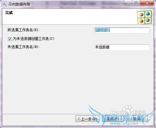 设置这70%和30%的数据表名称,我们默认系统给出的名称,然后点击完成