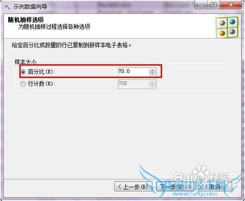 设置分割的百分比,一般我们使用70%的数据作为训练数据集,点击下一步