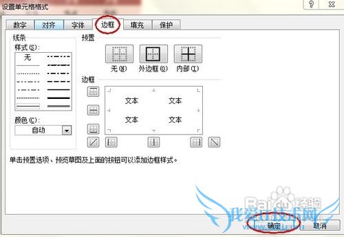 在弹出的对话框中,选择“边框”选项,设置表格的线条样式、颜色和边框,如图: