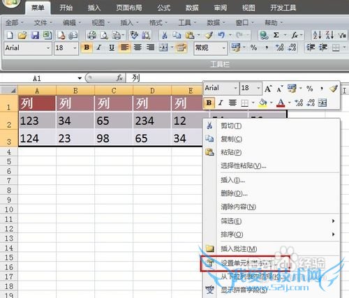 选中表格,单击鼠标右键,在出现的下拉列表中,选择“设置单元格格式”,如图: