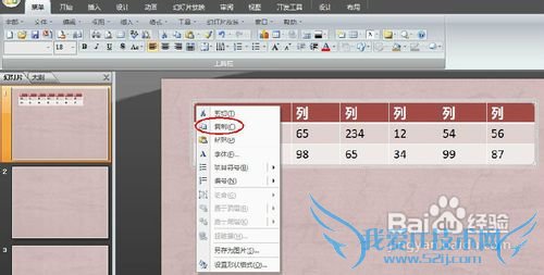 打开PPT,移动鼠标至需要转移的表格中任一位置单击选中表格,如图: