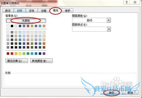 选择“填充”选项,选择“无颜色”去掉表格的背景颜色,点击“确定”,如图