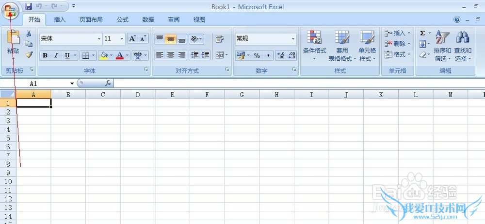 1,打一个EXCEL文件,如图点击最左上角的那个图案;