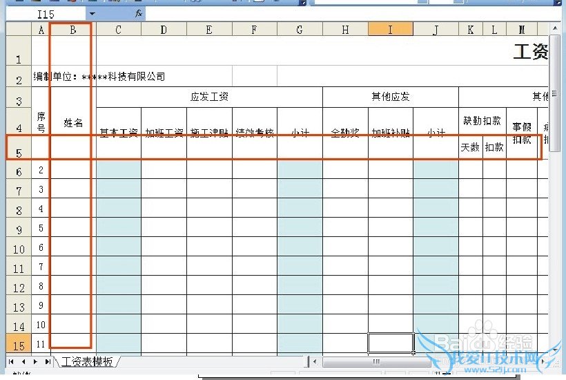 往右拉和往下拉就会发现第5行和B列都被冻结了,