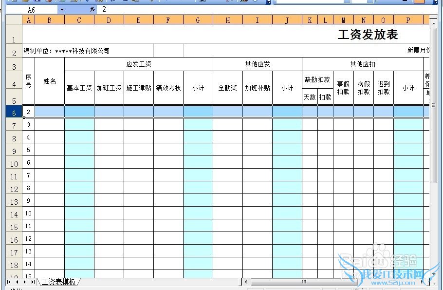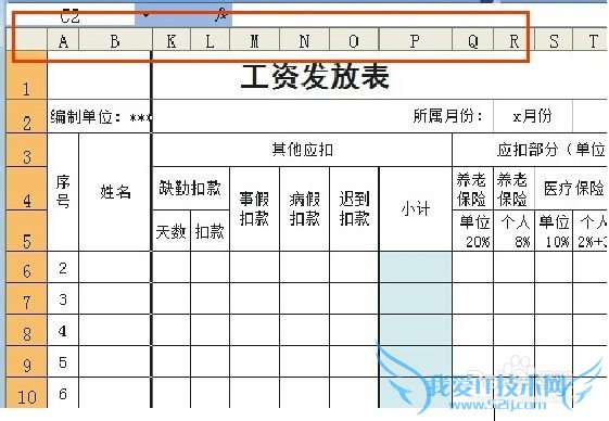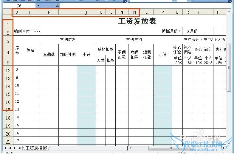选择第6行,在6的位置点击鼠标左键,