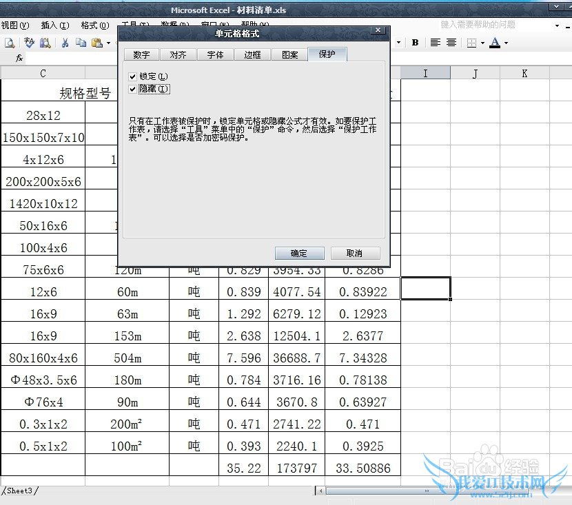 通过以上设定,“理论重量”中的内容都被隐藏,即使有人要打开也要输入设定的密码。