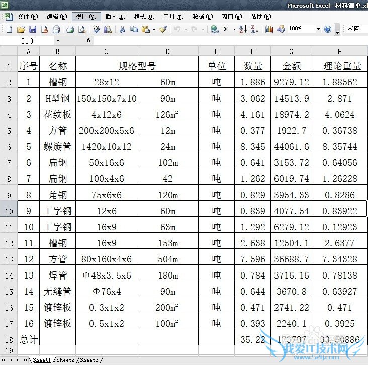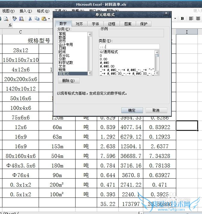 选中理论重量所在的单元格, 选择“格式→单元格”命令,打开“单元格格式” ,出现的对话框中,在“数字”标签的“分类” ,选中“自定义”选项,然后在“类型”下的方框中输入“;;;”,注意:分号是在英文状态下的。