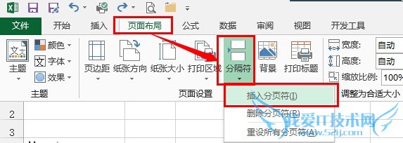 鼠标点击需要再次划分页面的行单元格上,然后依次点击 页面布局,分隔符,插入分页符: