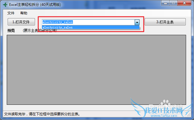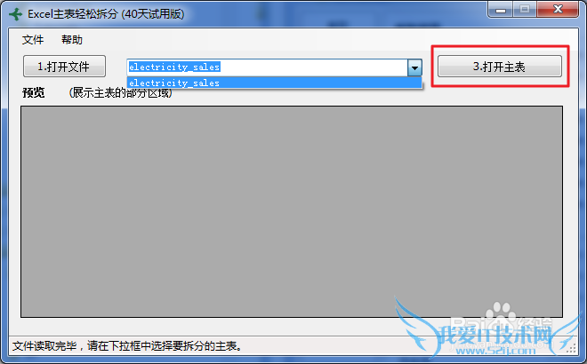 您需要按“打开主表”按钮,下方的预览框中会立即显示主表的内容(部分)。
