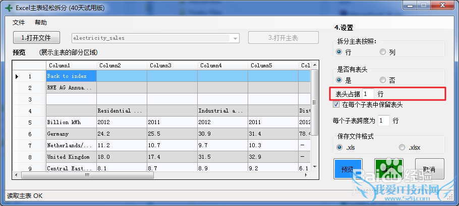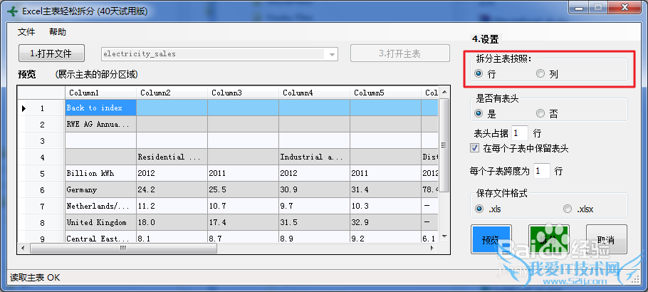 (1)首先,需要设置是按照行,还是按照列来拆分主表。
