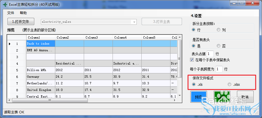 (5)最后,你还需要选择输出格式,该软件可以将拆分后的Excel文件按 .XLS 和 .XLSX 两种格式进行保存。