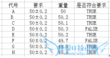 单击“确定”后,就会将答案显示在目标单元格中。然后再利用excel中下拉填充功能,将公式运用于其他单元格。结果如下图所示,TRUE表示符合要求,FALSE表示不符合要求。