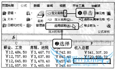 对单元格进行命名就是为了在公式或函数中引用单元格时能够直接应用所命名的名称,而无需引用单元格地址。应用名称的方法有两种,一种是在输入公式时单击“用于公式”按钮,另一种是用于替换已输入的公式中所引用的单元格名称。