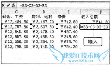 用同样的方法应用“房租”和“杂费”选项,完成后的公式为“=现金收入-薪金、工资-房租-杂费”。