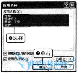 弹出“应用名称”对话框,在“应用名称”列表框中选择要应用的名称,单击“确定”按钮。