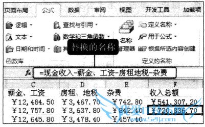 替换名称是在单元格中已输入公式的情况下,把输入公式中引用的单元格地址替换成定义的名称,可通过“定义公式”下拉列表中的“应用名称”来实现。