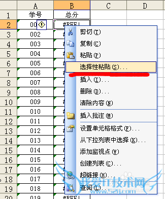 但如果我们想将每一个学生的总分单独保存,便于和其他班级的学生进行成绩比较,却发现对总分一栏执行复制操作,粘贴后,效果如图,