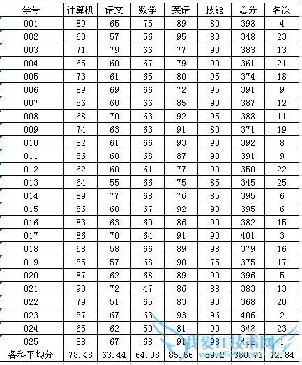 利用Excel的自动计算功能来处理数据很是方便,如在成绩表中我们可以自动计算学生的总分、名次、各门功课的平均分等。