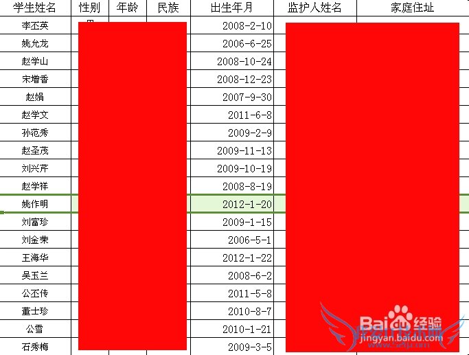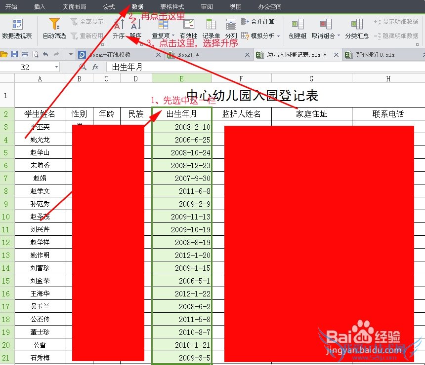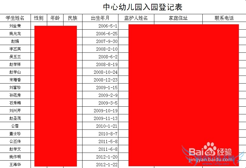 excel的排序功能是很有用处的,但是很多朋友不会用。这里就举例一个例子介绍一下这个功能的使用方法。如下面是一张幼儿园的登记表,它是随机排列的,我们想把这些学生按照出生年月,也就是年龄大小排列,应该怎么做呢?