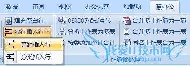打开工作簿,选择【慧办公】→【隔行插入行】,如下图