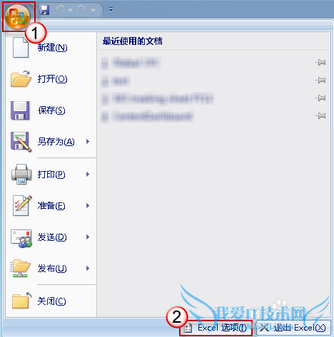 然后呢,我们按一下 Office 按钮,单击“Excel 选项”,看图: