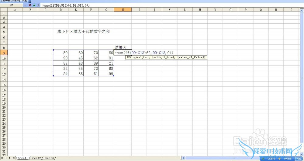 输入公式=sum(if(判断条件,条件成立输出的结果,条件不成立输出的结果))