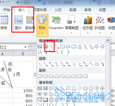 没有专门的表格样式,那么只能自己动手画了,首先“插入” ---“形状”选择直线