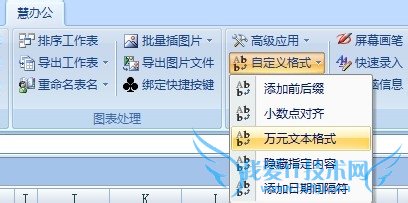 选择【慧办公】→【自定义格式】→【万元文本格式】,如下图