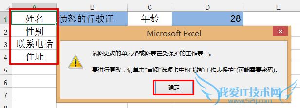 输入设置的保护密码后,点击 确定 ,即可撤销对工作表的保护了: