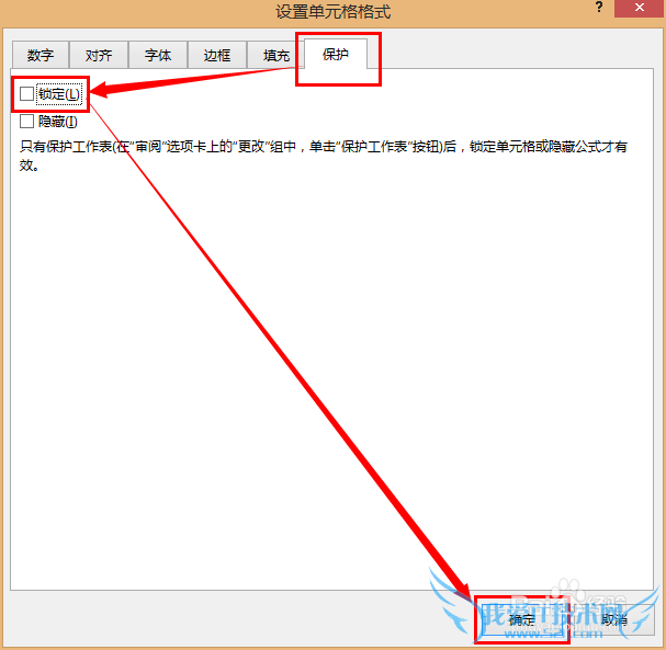 点击 保护,取消勾选 锁定,然后点击 确定 :
