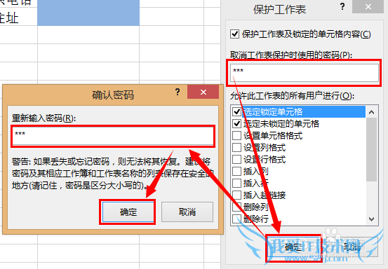 输入保护密码后点击确定,然后再次输入密码后,点击确定: