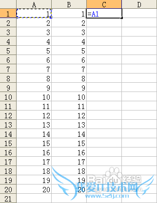 在C1处打出“=”号 (注意是括号内的=号),然后点击A1。