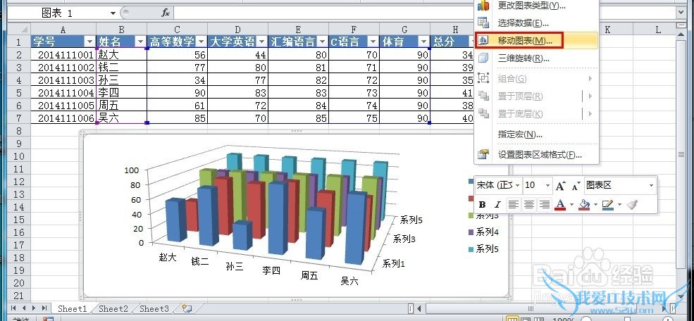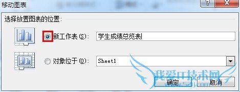 移动柱形图到一个新的工作表“学生成绩总览表”中