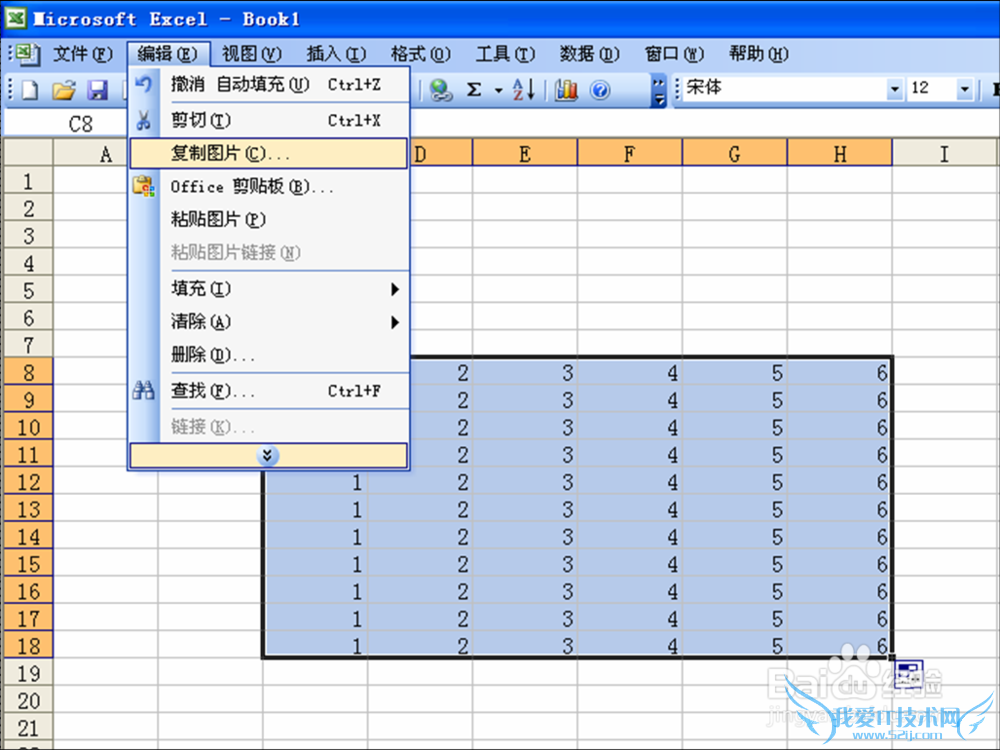 选中数据,然后按住shift键,点击编辑,会出现复制图片,点击复制图片